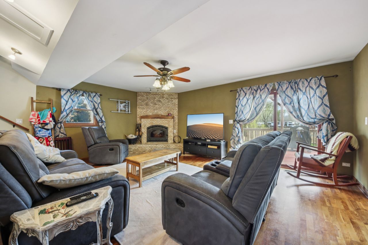 Chain O' Lakes riverfront home located on three lots with a MASSIVE 60X24 FT GARAGE WITH A SECOND FLOOR! This updated 4 bedroom, 3 bath home features a semi-custom kitchen with granite countertops, soft-close cabinetry, under-cabinet lighting, stainless steel appliances, breakfast bar, eating area, porcelain tile flooring, and a custom bar cabinet. The kitchen opens to a cozy family room with a fireplace- all with scenic views. Two bedrooms are on the main floor and two additional bedrooms are on different wings of the second floor. The primary suite is its own escape, featuring a massive en suite bathroom and walk-in closet. Enjoy multiple outdoor entertaining spaces in the front and back of the home, including an above ground pool. Massive garden area is perfect for anybody with a green thumb. The star of the show: The massive garage perfect for car or boat storage, which also features a second floor with three huge additional rooms upstairs. The possibilities are endless. The property is located on 3 PINS. Direct access to the Fox River leads you to Grass Lake and the entire Chain O' Lakes. Enjoy a nearly half acre total lot while also living on the water- the best of both worlds!